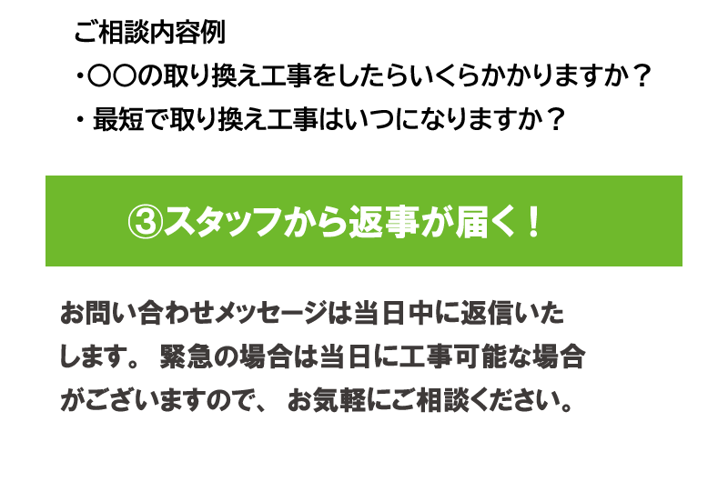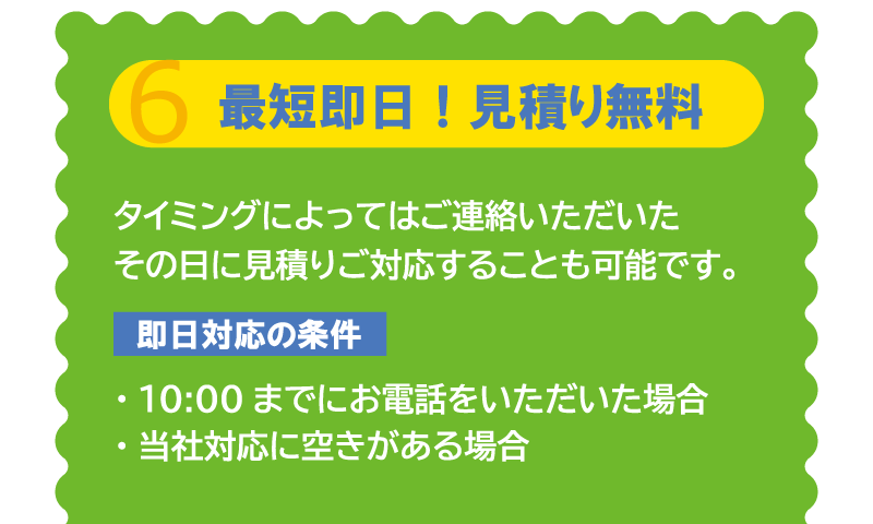 設置状況により前後する場合があります。お急ぎの方もご相談ください。